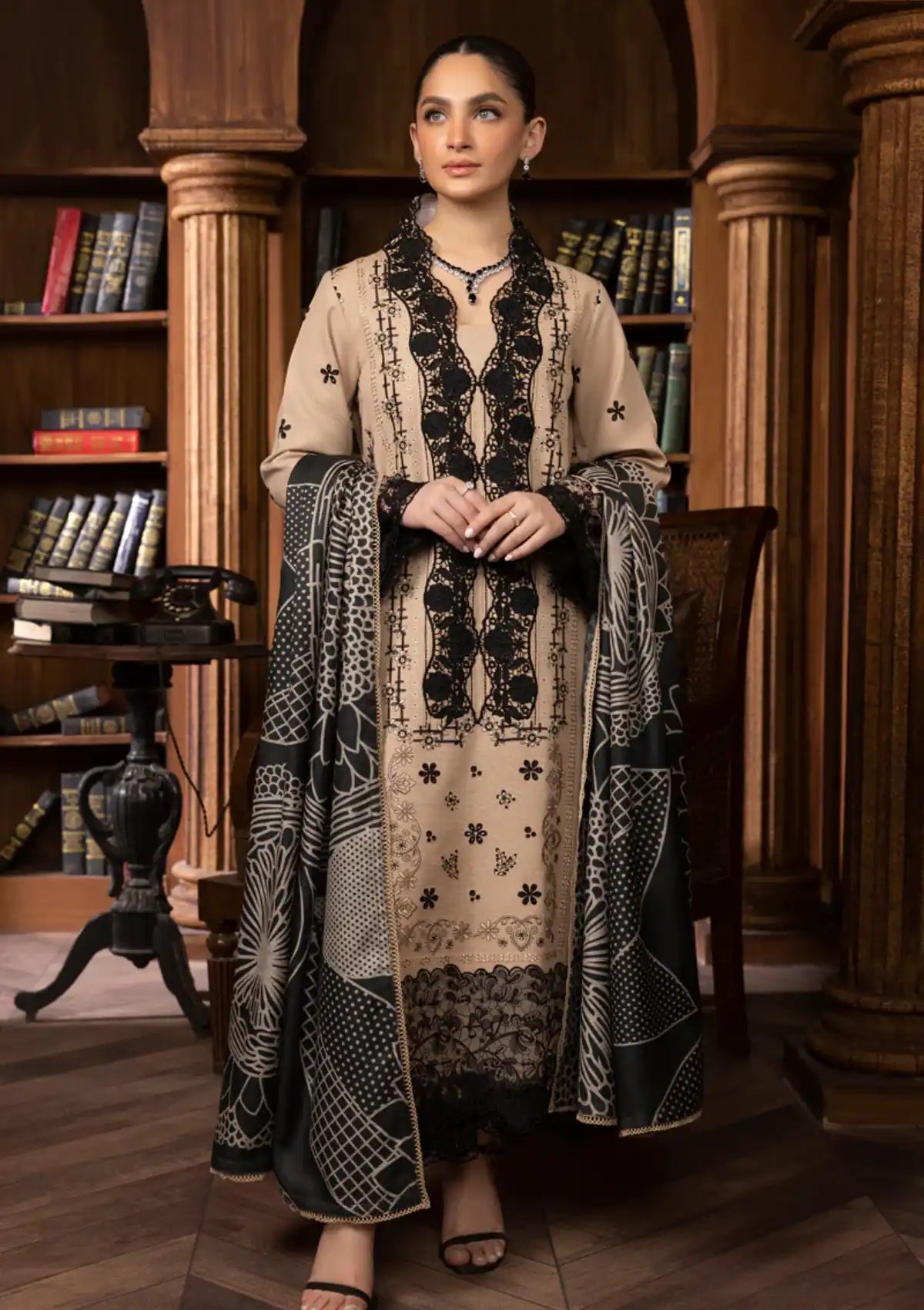 - Digital Printed Wool Shawl 2.75 Yard