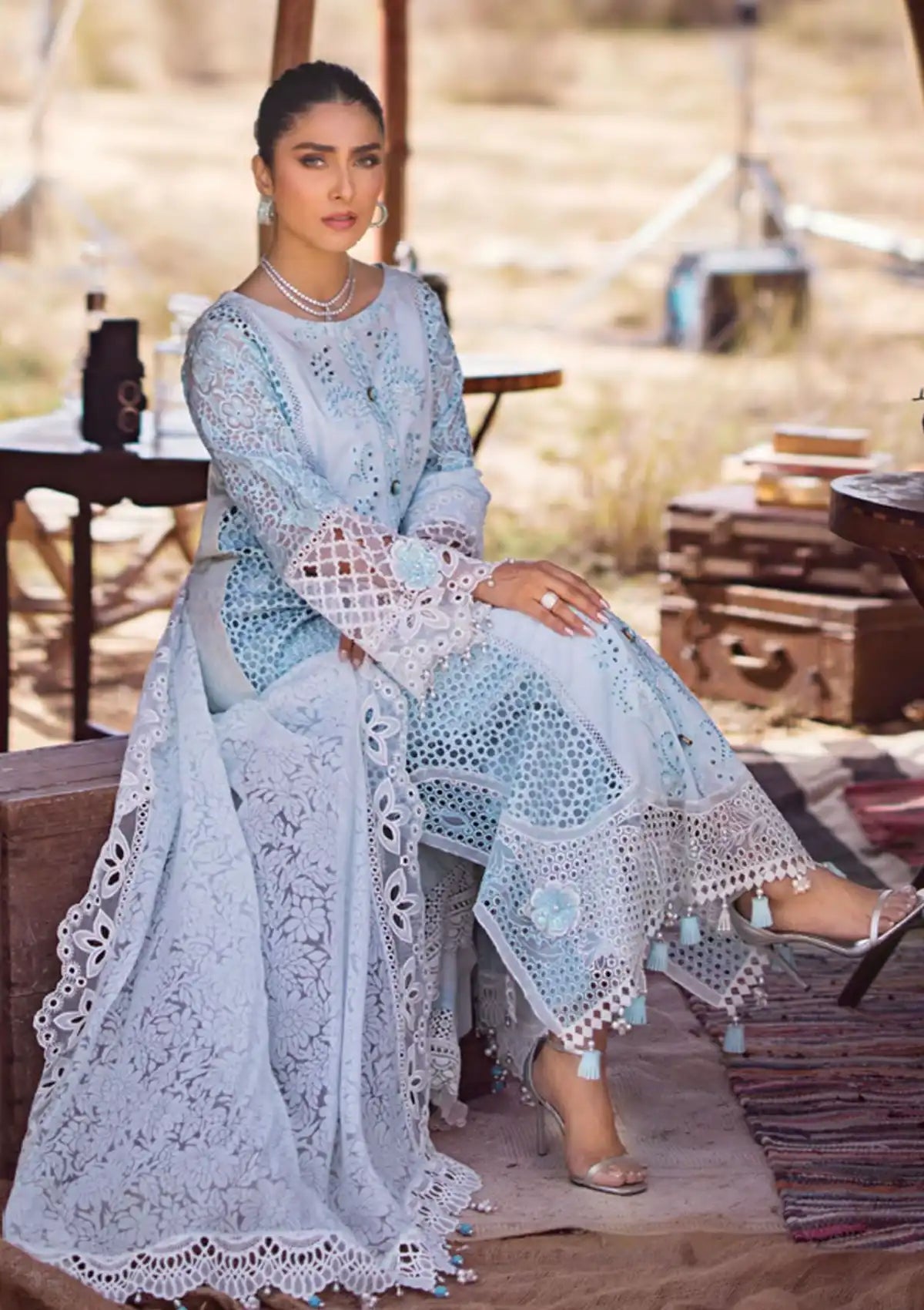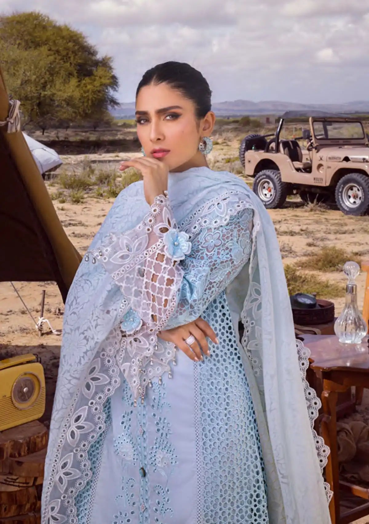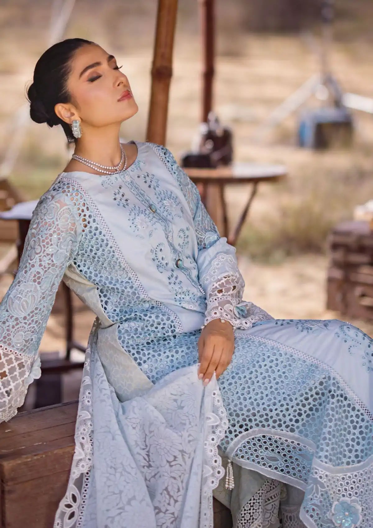 • Embroidered Chikankari Sleeves On Organza With Sequins