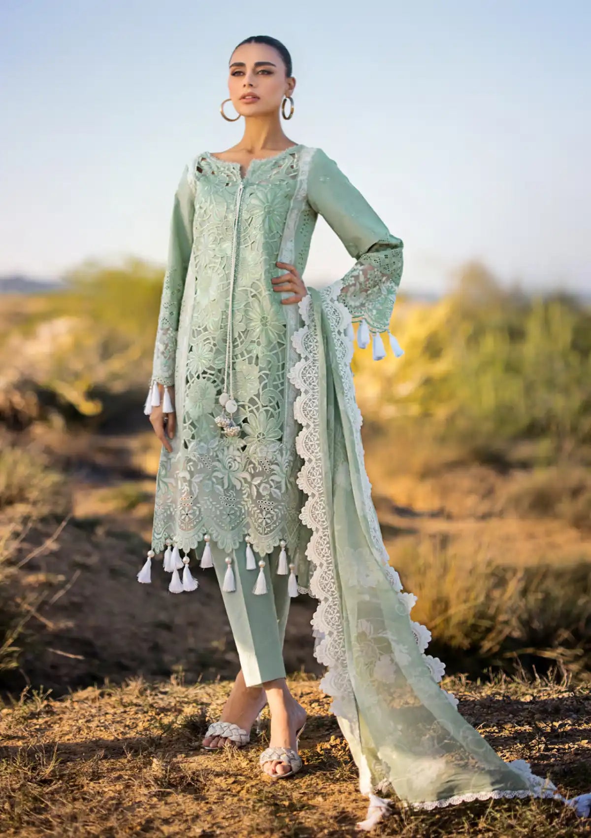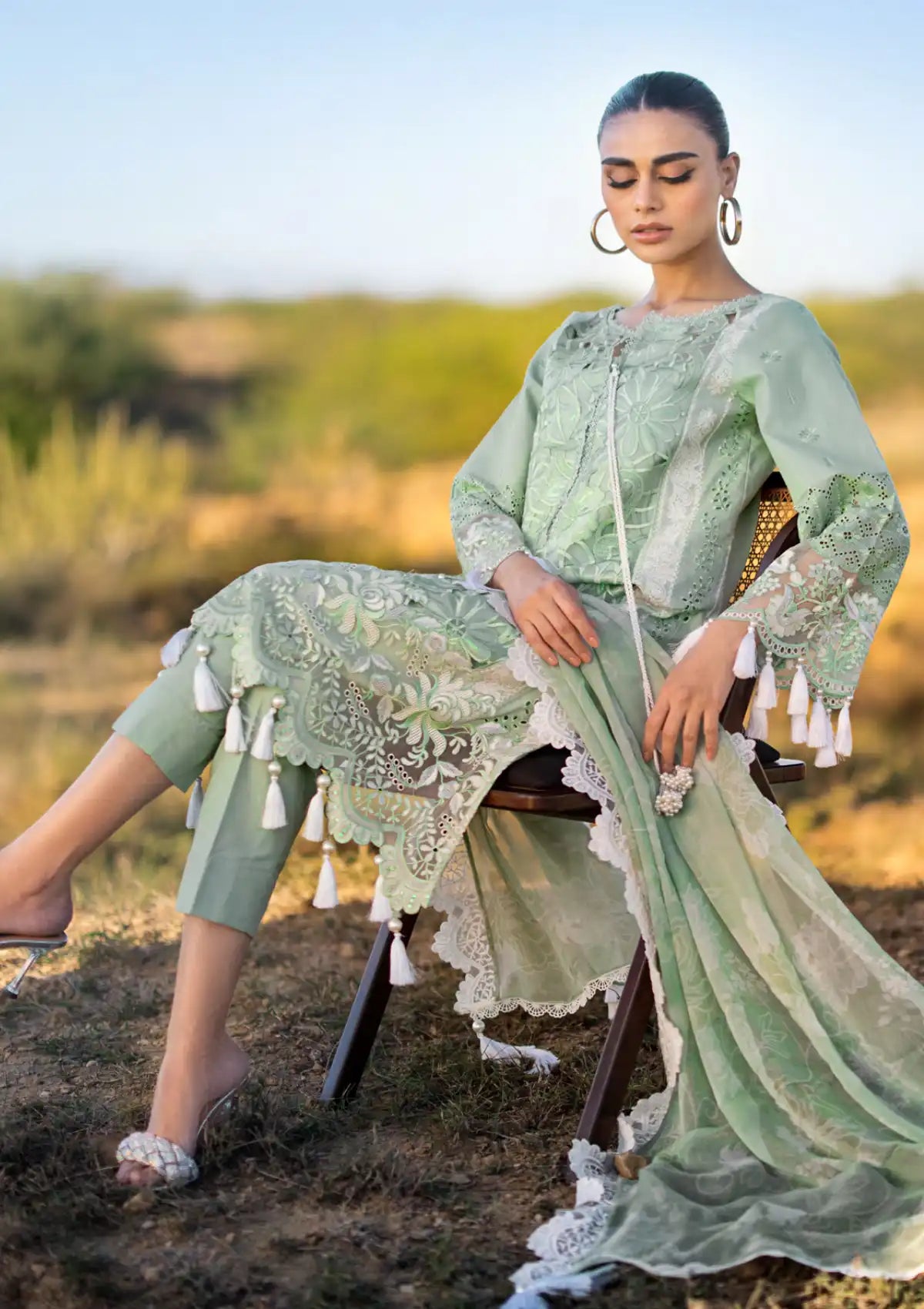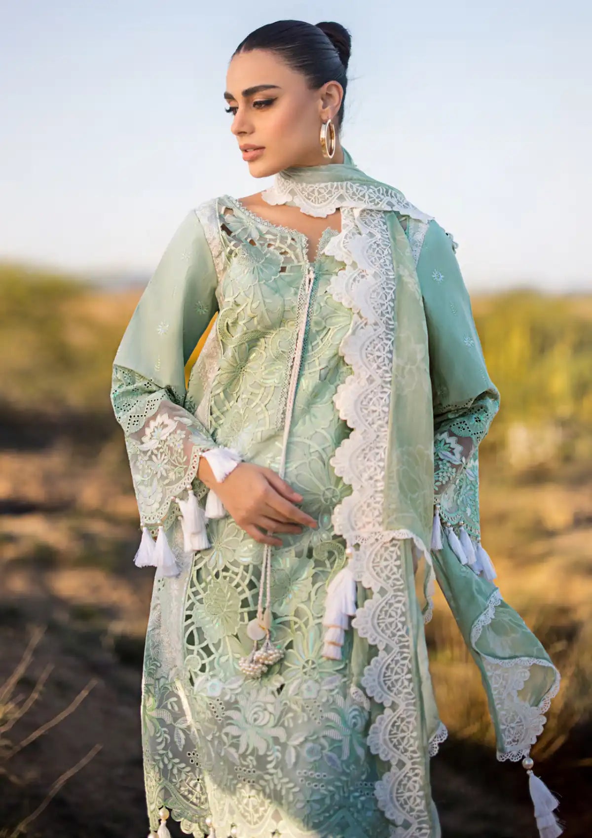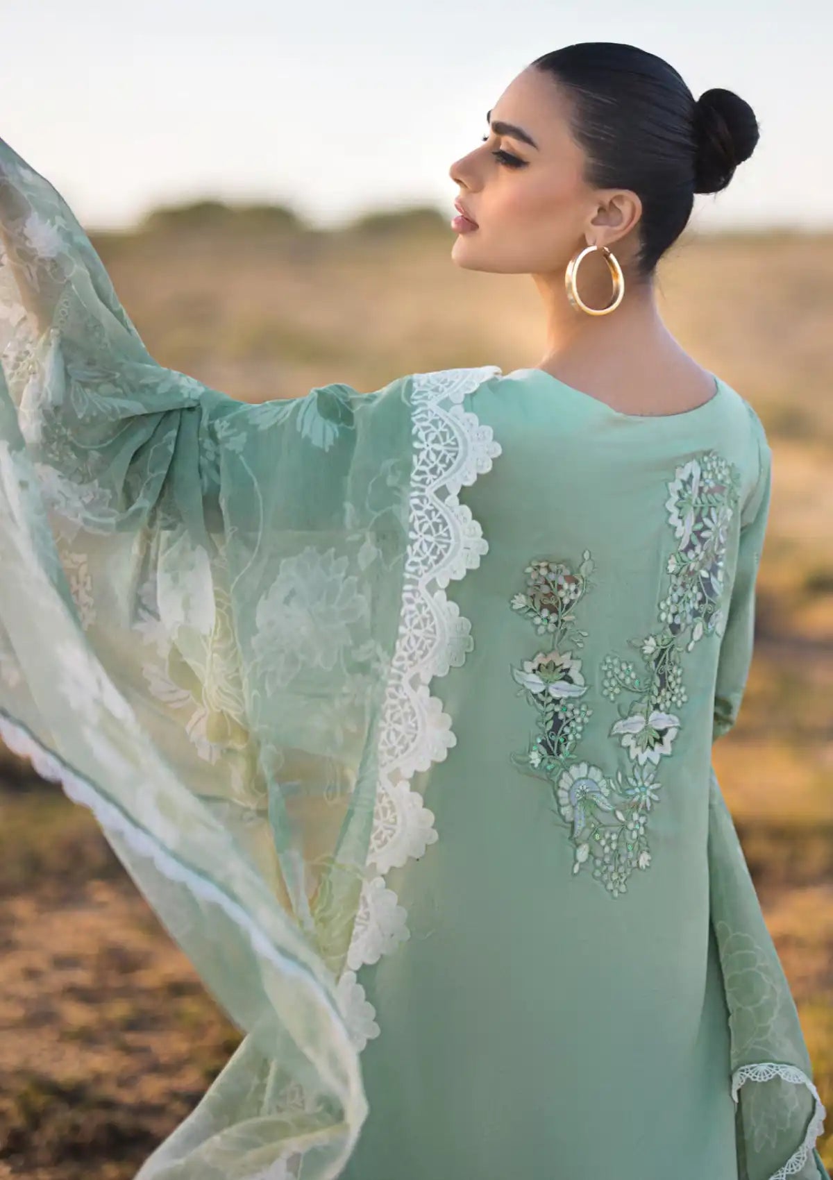 - Embroidered Chikankari Sleeves On Organza With Sequins