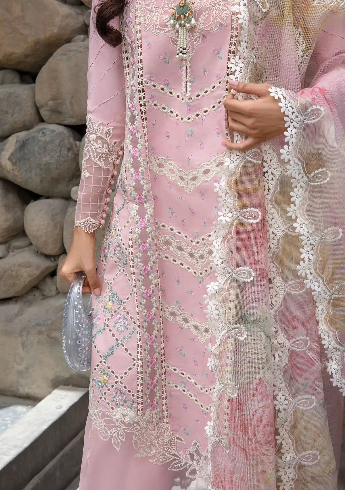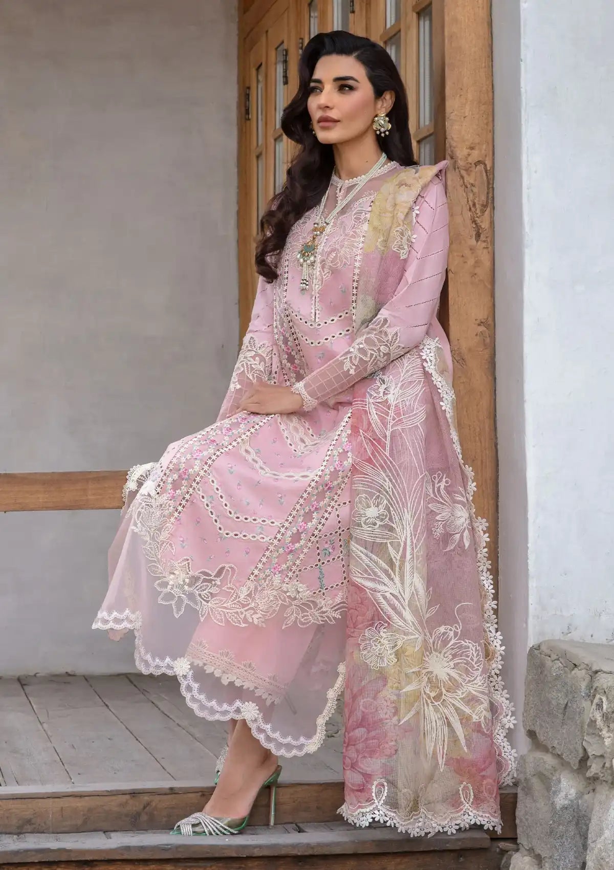 Crimson Luxury Lawn'24 D-07B-A Floral Mesh-Rose Pink