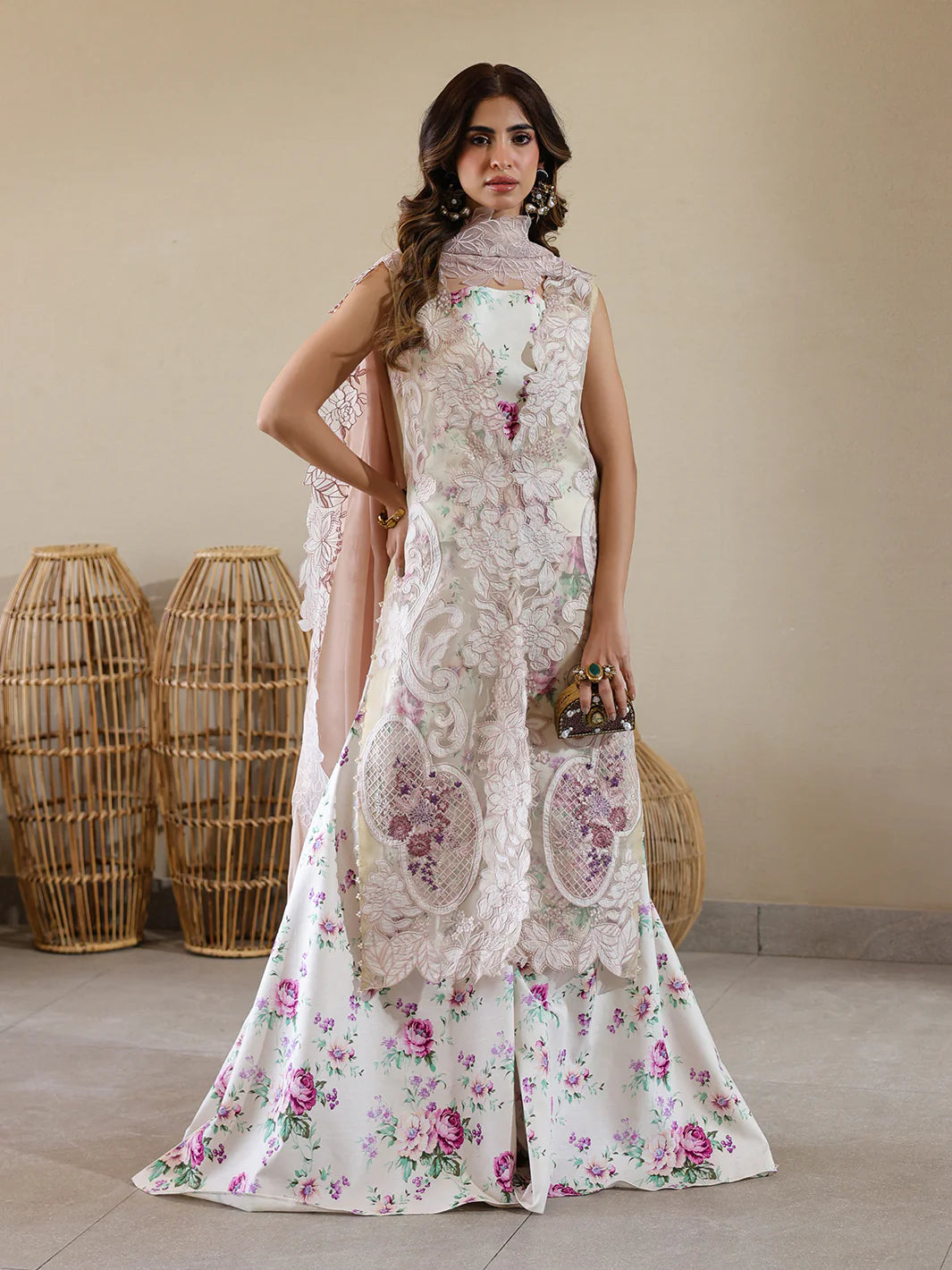 • Lazer Cut Embroidered Shirt on Organza (Wider 2.25 M)