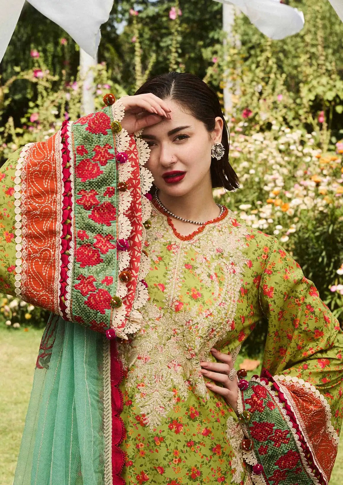 - Embroidered Sleeves Border 02 ( Green Lawn) 0.78 Meters