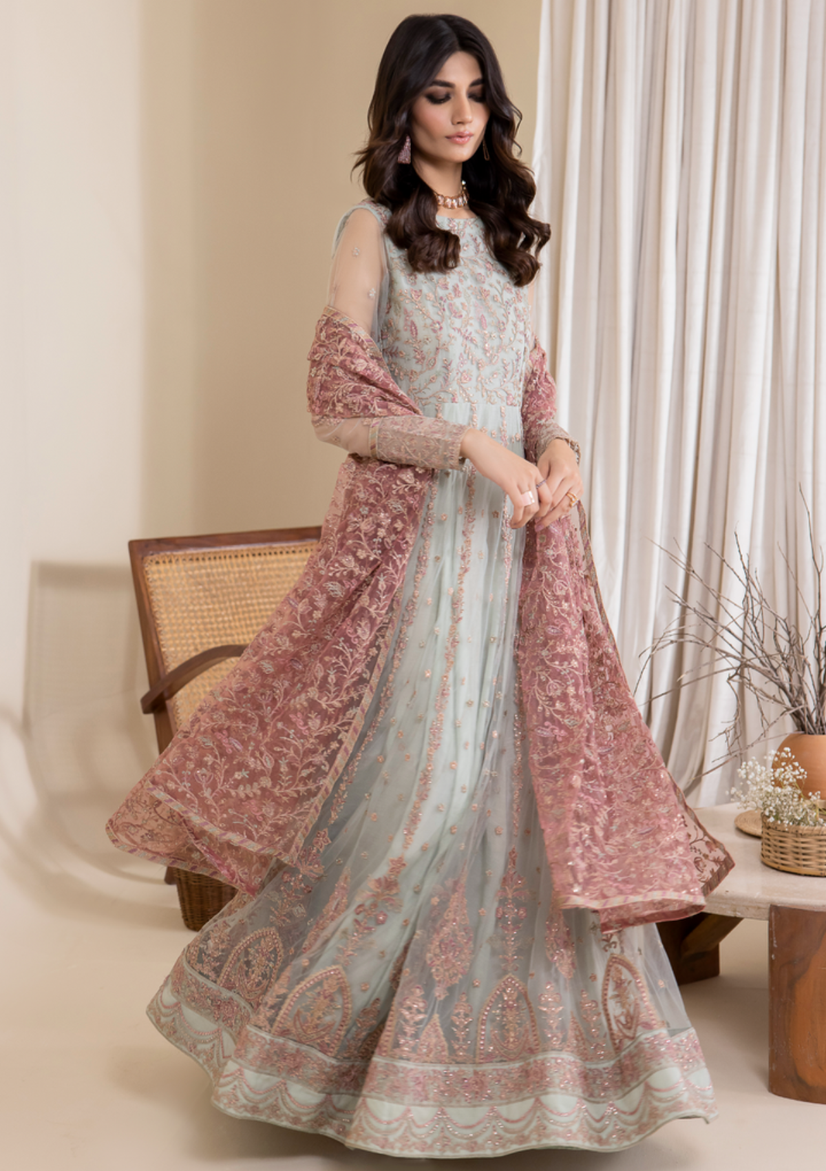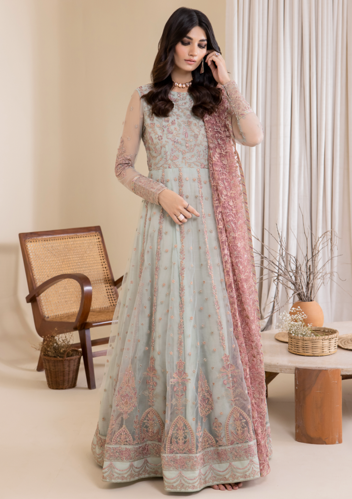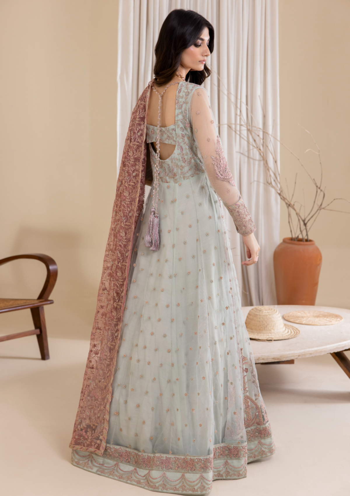 - Dupatta: Embroidered Net (2.75 y)