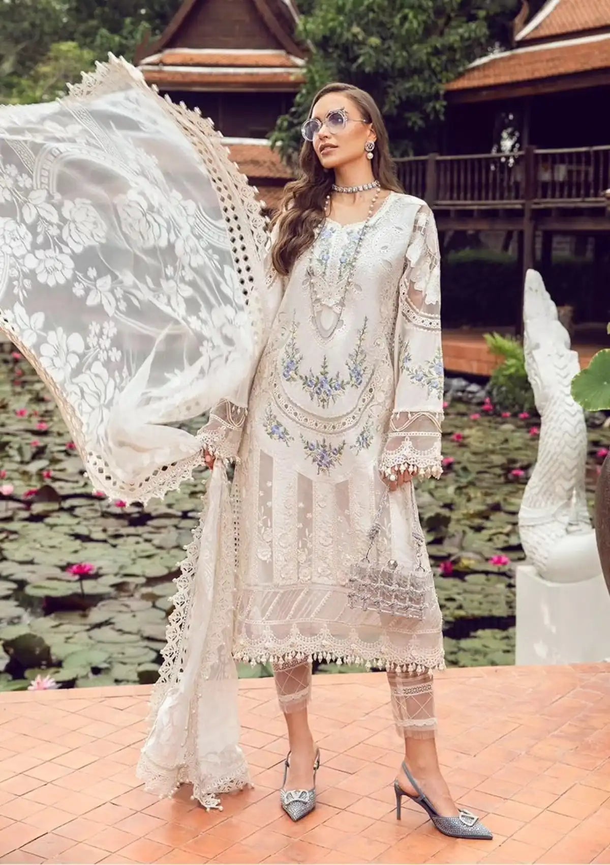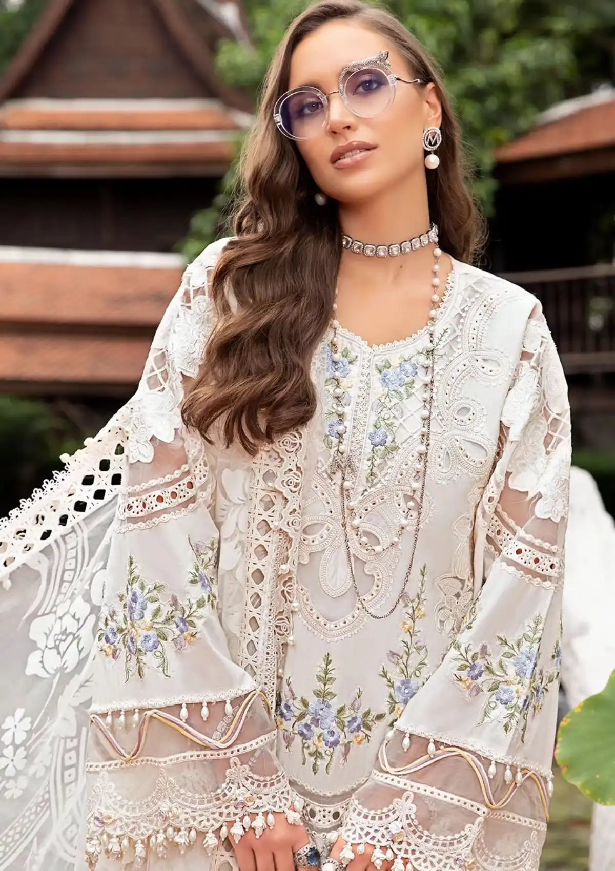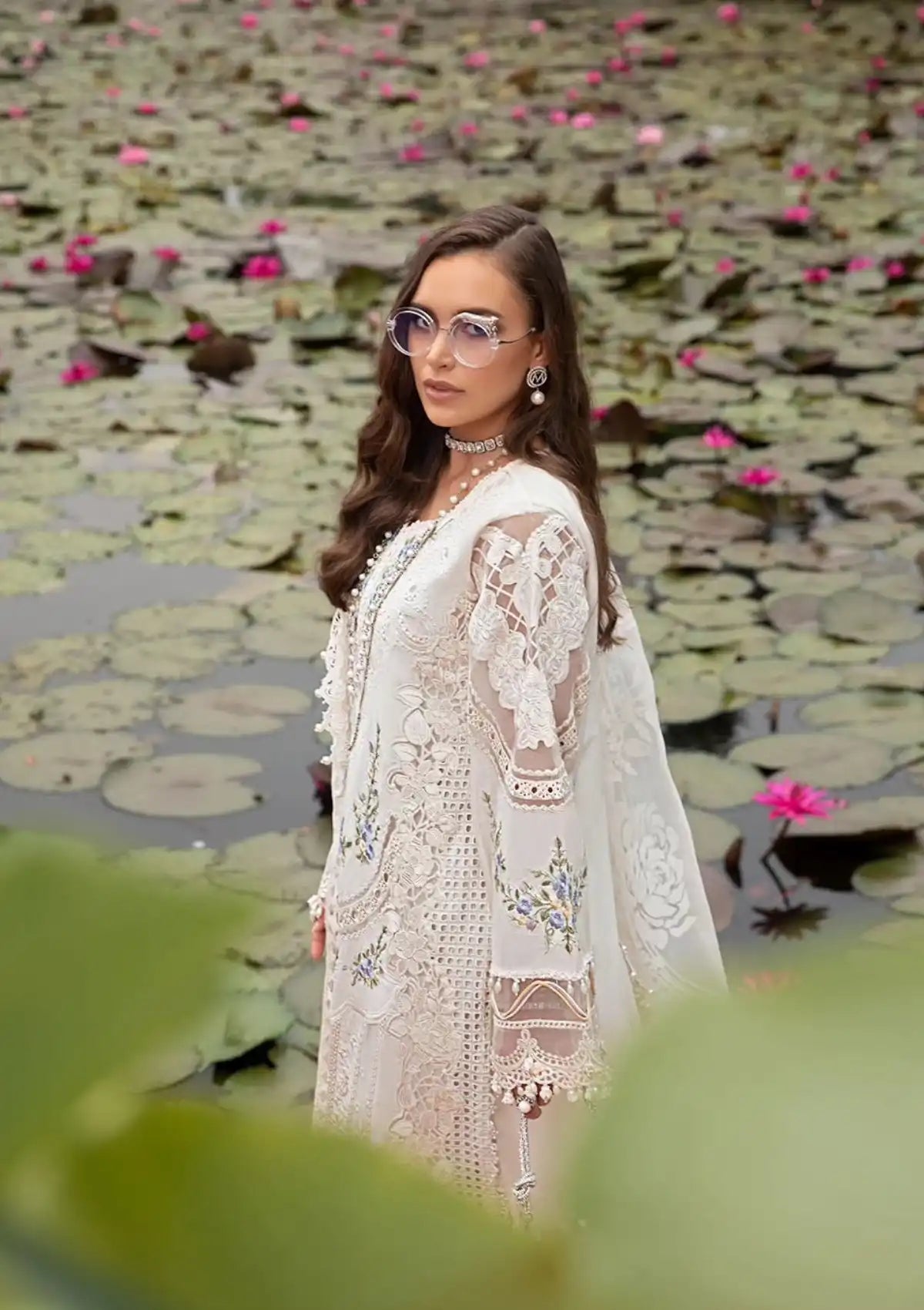 • Embroidered Lawn Front Panel With Organza Applique & 3D Flowers